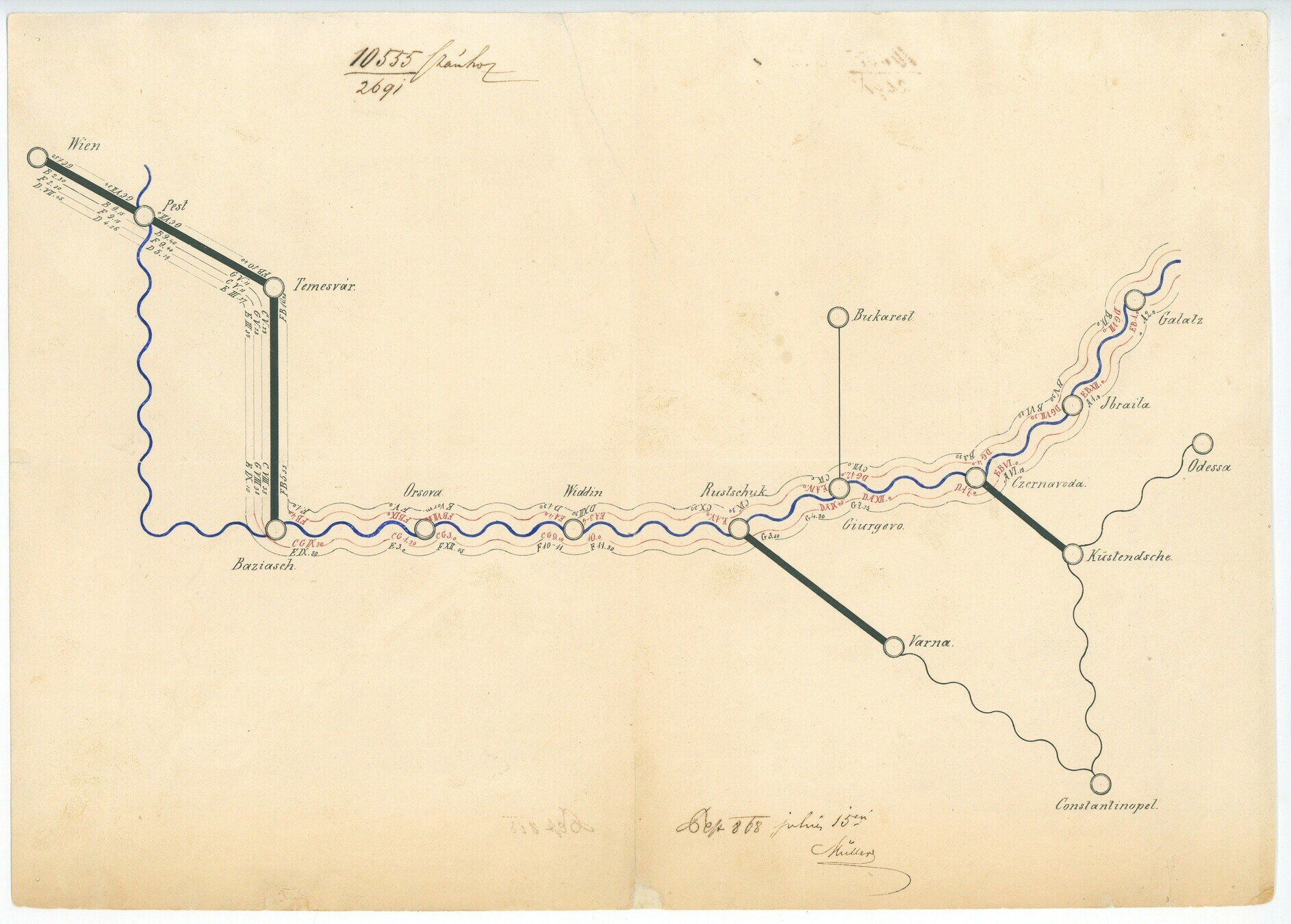 ? Müller - Postai útvonalak Bécs és Galác között, 1868, Postamúzeum