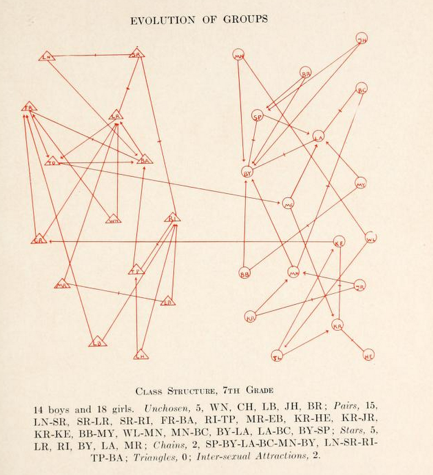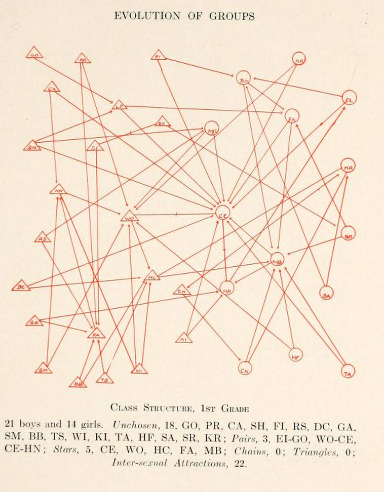 Jacob Moreno - Who Shall Survive, sociograms, 1934