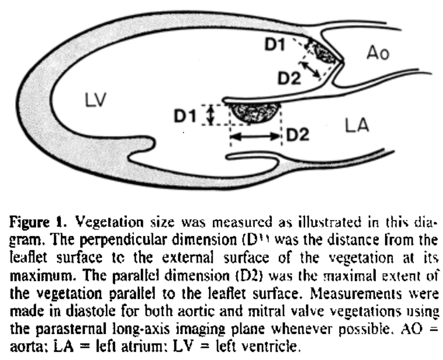 Sanfillpo et al. Echocardiographic assessment of patients with infectious endocarditis: prediction of risk for complications.