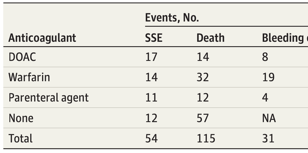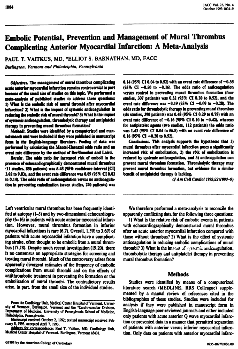 Meta-analysis from 1993 that looked at embolization and benefit of anticoagulation
