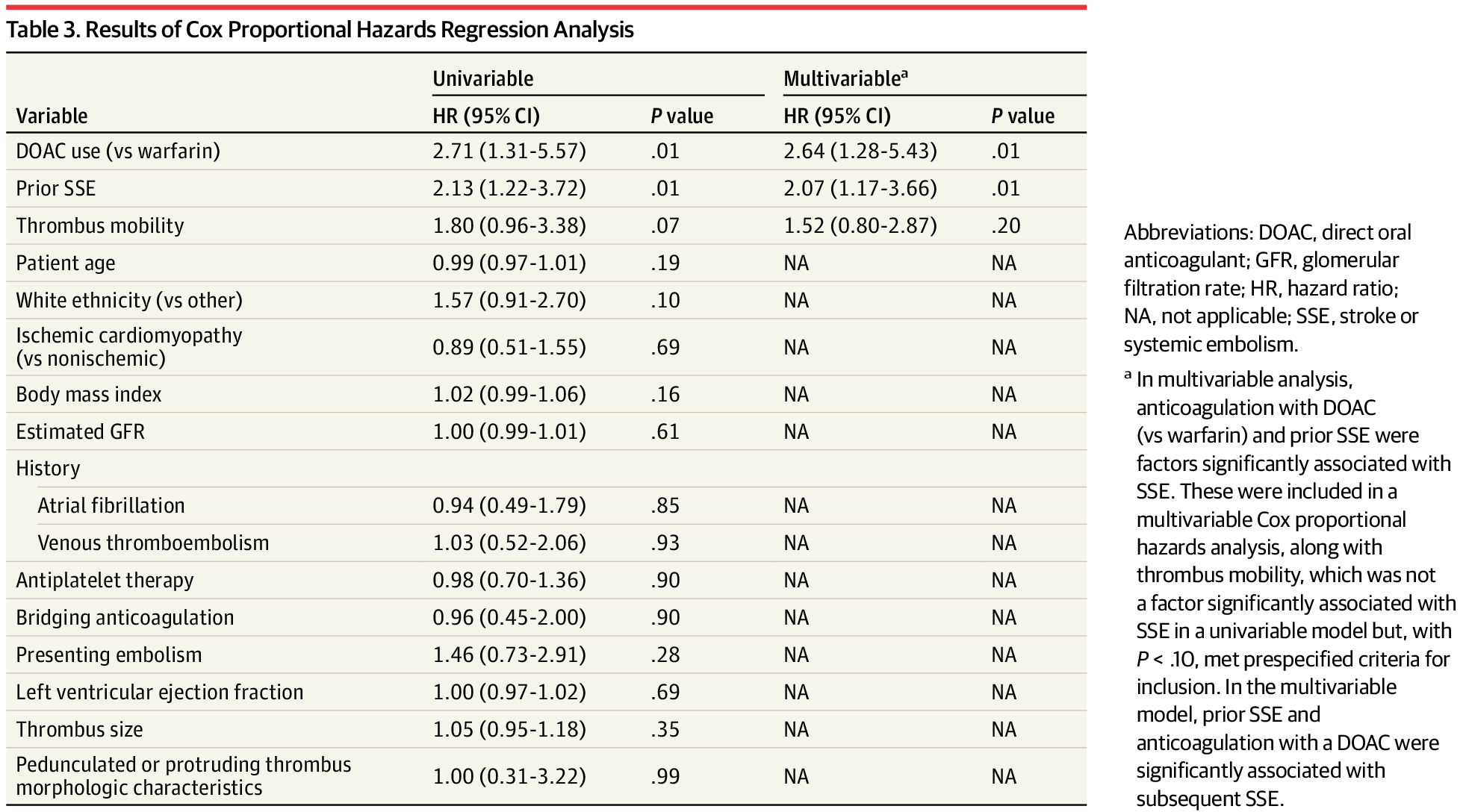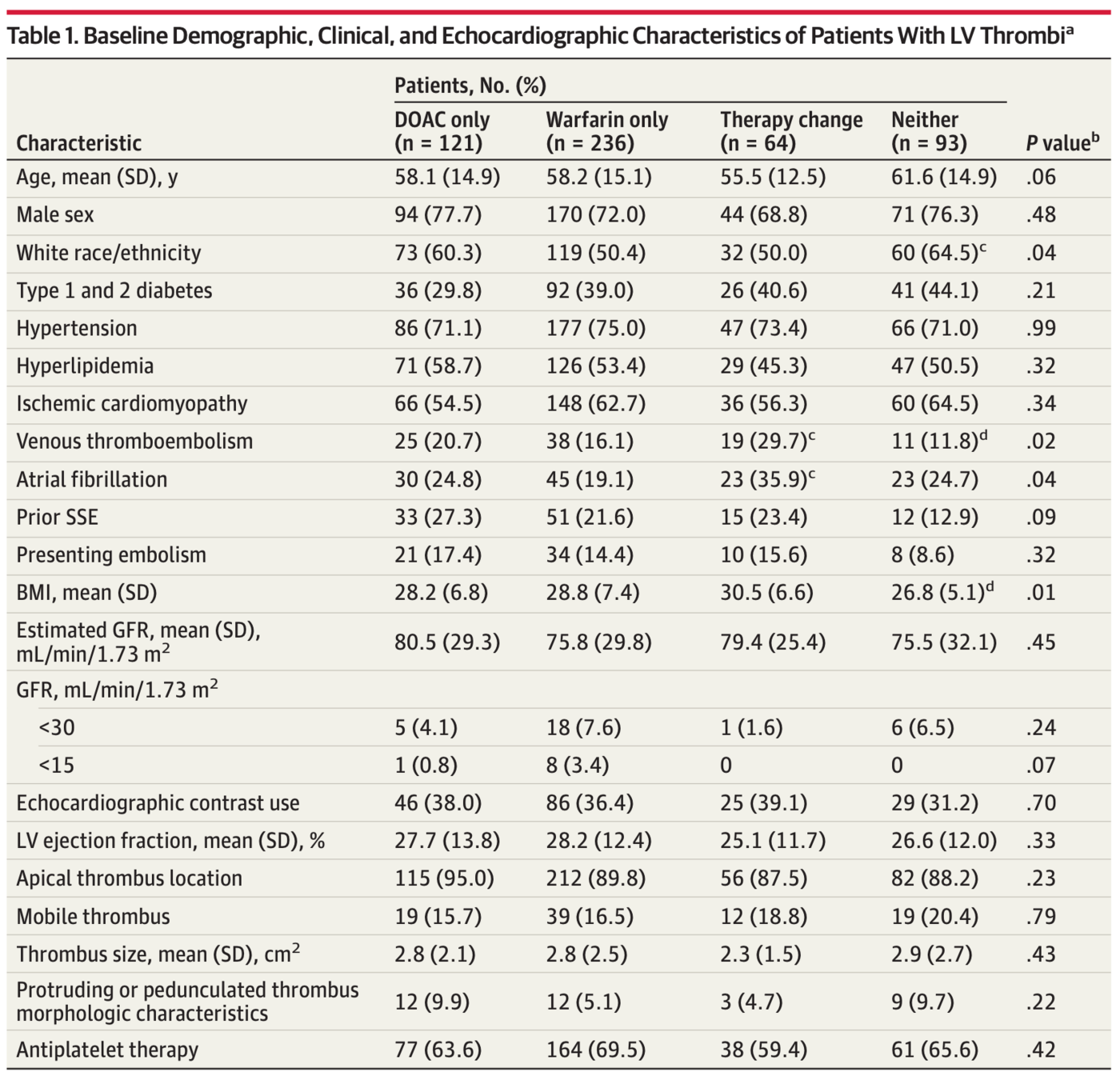 A total of 514 patients (379 men; mean [SD] age, 58.4 [14.8] years) who had echo diagnosed LV thrombi were identified
