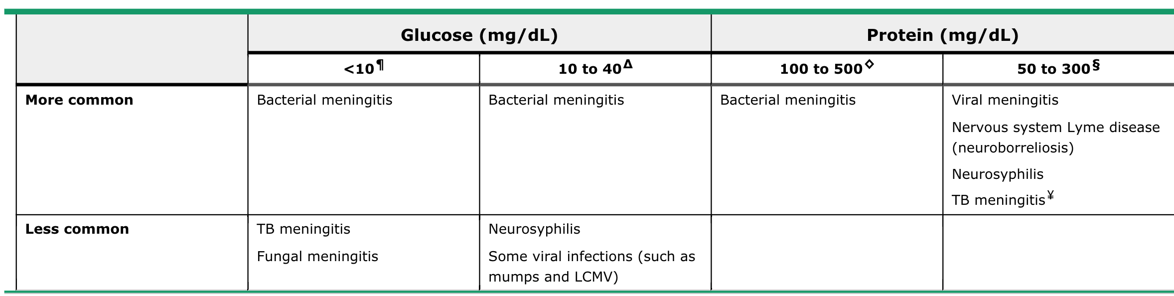 pH <7.2 (if unavailable use glucose <3.4 mmol/L)
