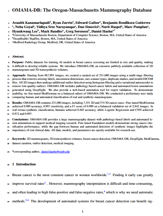 THE OREGON-MASSACHUSETTS MAMMOGRAPHY DATABASE
