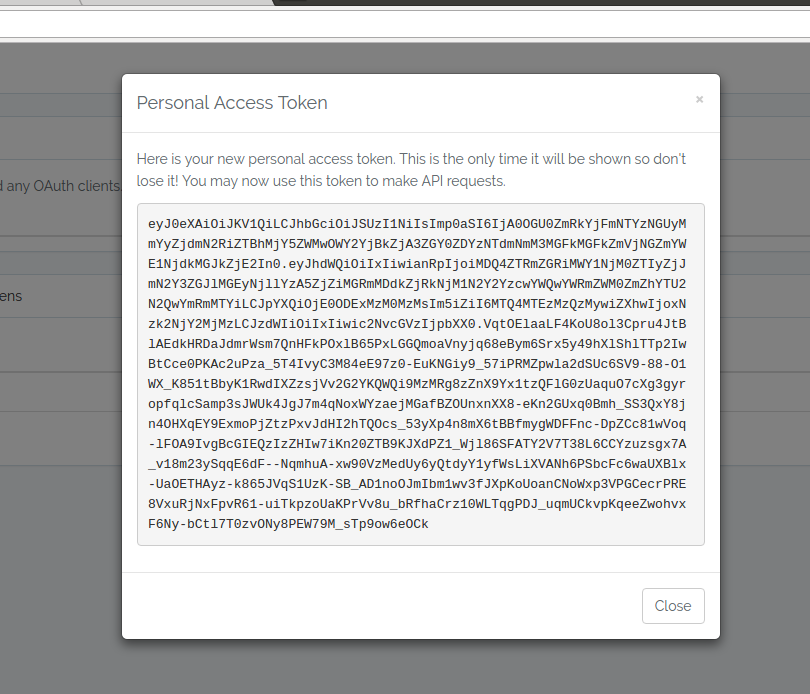 Criando um personal token para acessar uma rota do nosso app, os personal tokens tem um período de vida bem longo, geralmente usado para desenvolvimento.