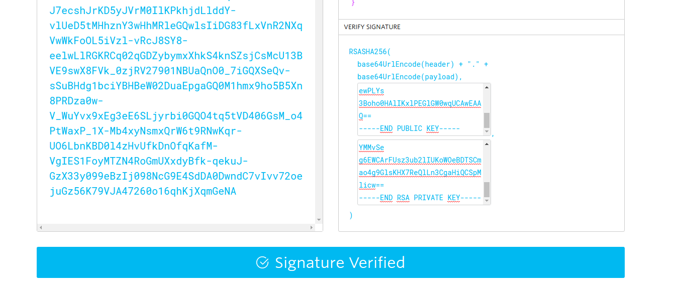 O token foi validado com nossas chaves RSA, e conseguimos ver os dados do payload.