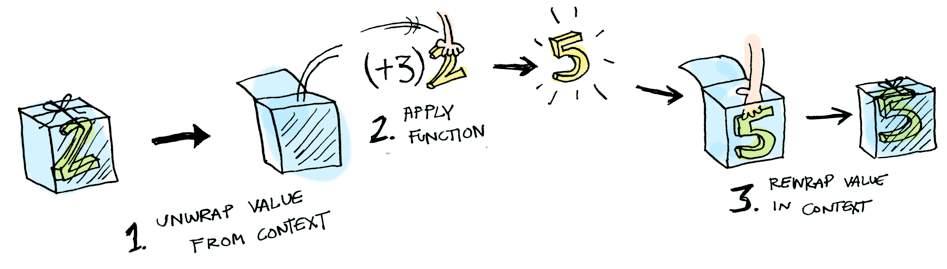 - Array.map(n => n + 1) // Maps the values into the array, this makes it a Functor
