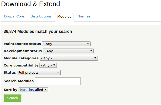 - Search for contributed modules/themes