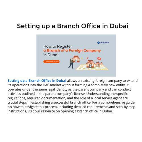 Setting up a Branch Office in Dubai allows an existing foreign company to extend its operations into the UAE market without forming a completely new entity.