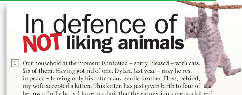 1. Do you think the writer's attitude to animals is realistic, sentimental or hard-hearted?