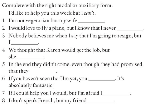 • We can leave out the repeated verb or phrase, keeping only the auxiliary.