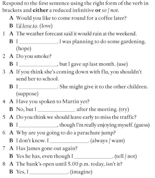 • We can avoid repeating an infinitive, and just reduce it with to:
