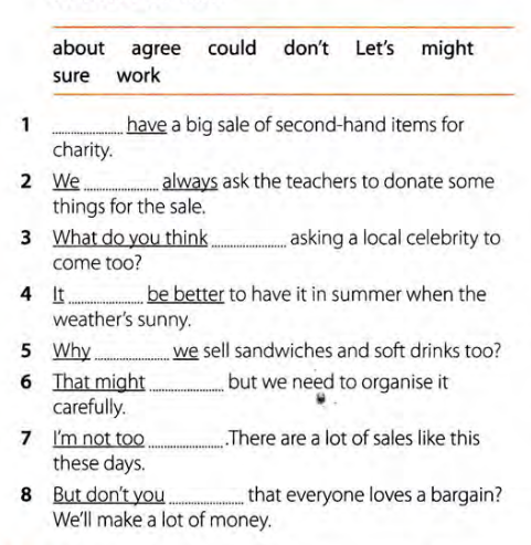 How about...? | Why don't we...? | We could... | What do you think about...? | It might be better to... | That might work. | I'm not too sure | Don't you think...?