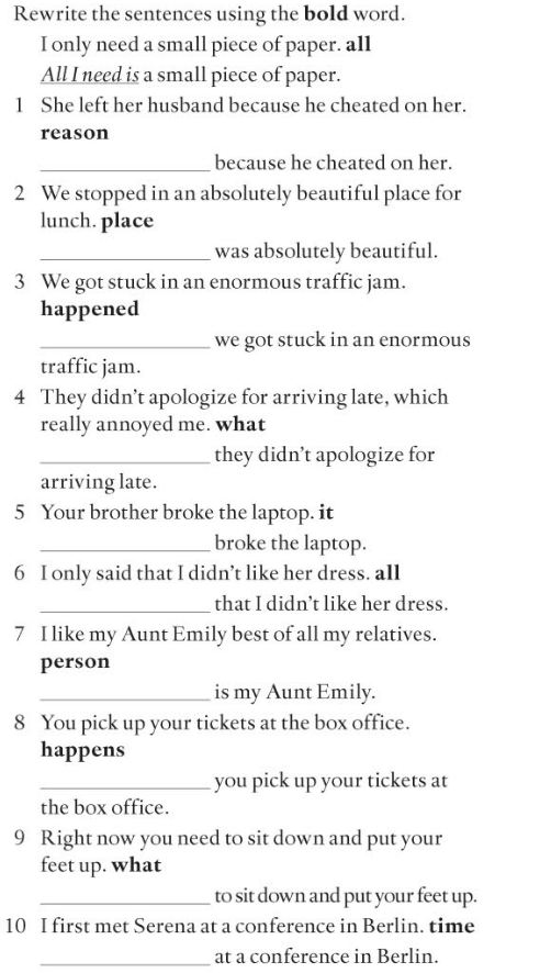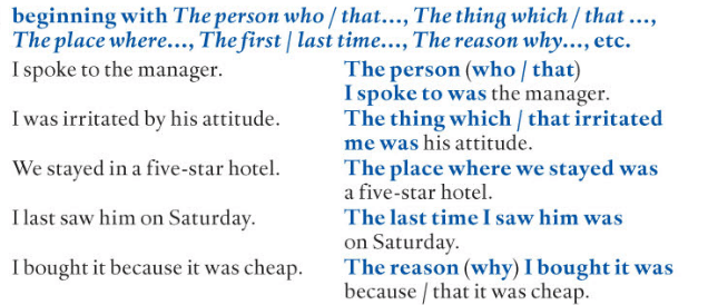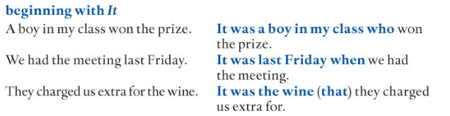 Focus attention on or emphasize one part of the sentence. Put it at the start, ...