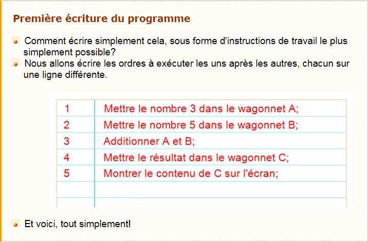 Imaginez une machine qui sait exécuter ces instructions, elle pourra le faire des milliers de fois sans se fatiguer et avec des valeurs aussi grandes que vous voulez.