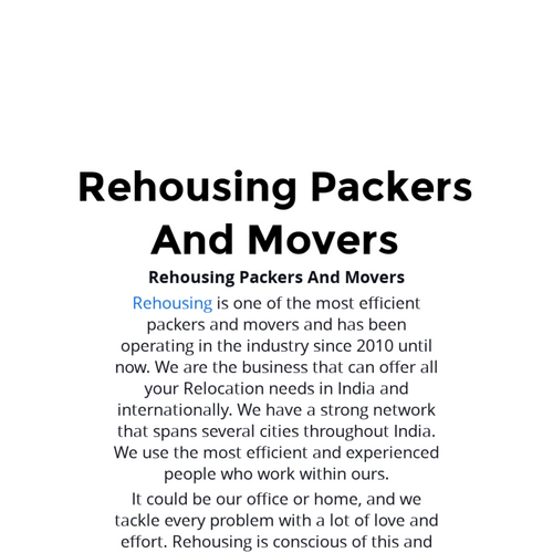 Rehousing Packers And Movers Packers and movers in Viman NagarRehousing is one of the most efficient packers and movers and has been operating in the indus