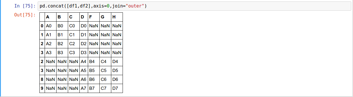 concat(objs, axis=0, join='outer', join_axes=None, ignore_index=False,