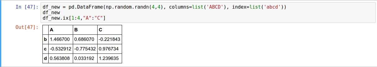 pandas provides a suite of methods in order to get integer and label based indexing. The semantics follow closely python and numpy slicing