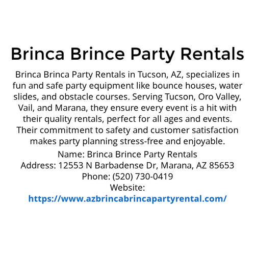 https://www.azbrincabrincapartyrental.com/ Brinca Brinca Party Rentals: Top choice in Tucson for bounce houses, water slides, & fun party equipment. Safety & joy in every rental!