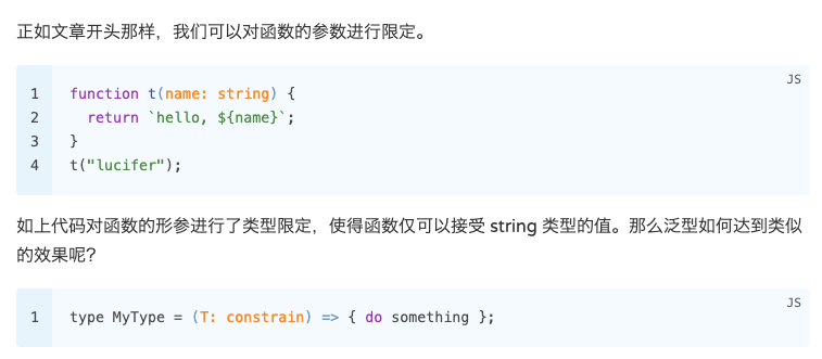 function t(name: string) { return `hello, ${name}`; } t("lucifer");