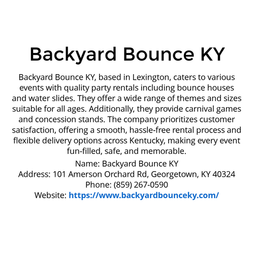https://www.backyardbounceky.com/ Backyard Bounce KY offers quality party rentals including bounce houses & water slides in Lexington & surrounding KY areas. Fun, safe & memorable events.