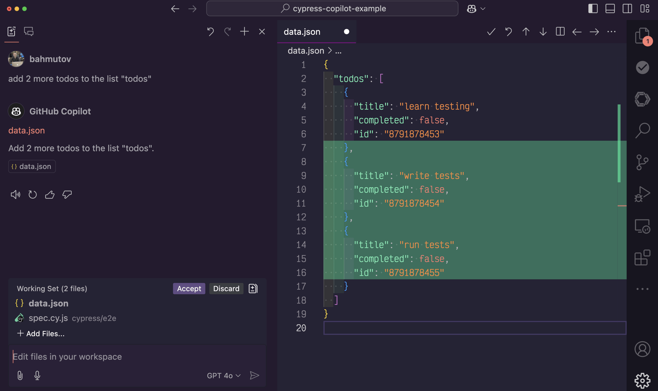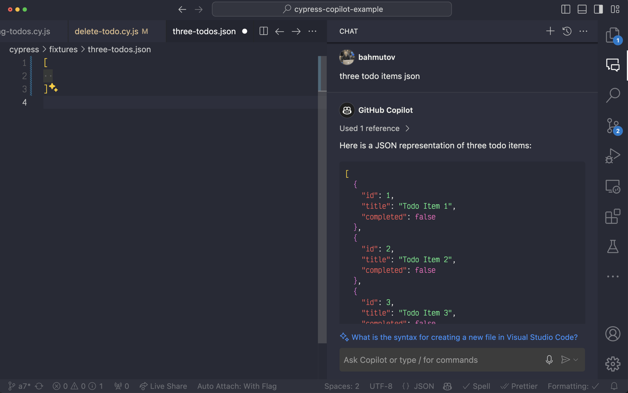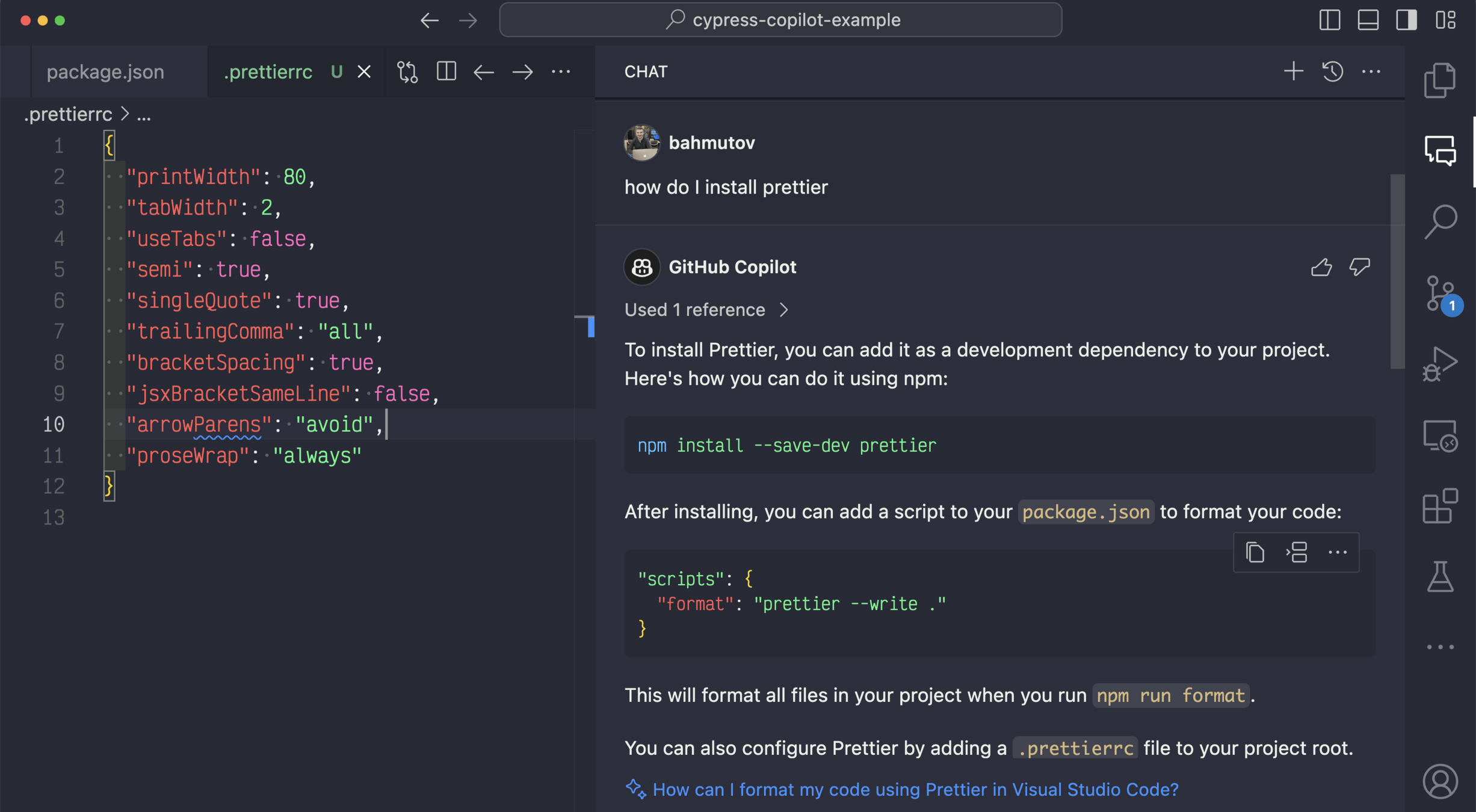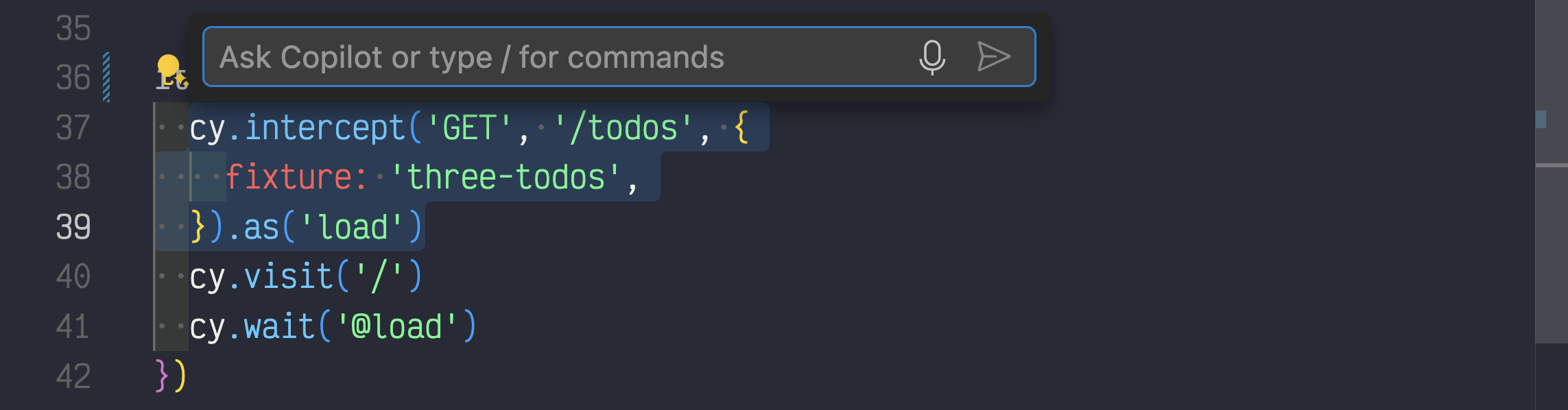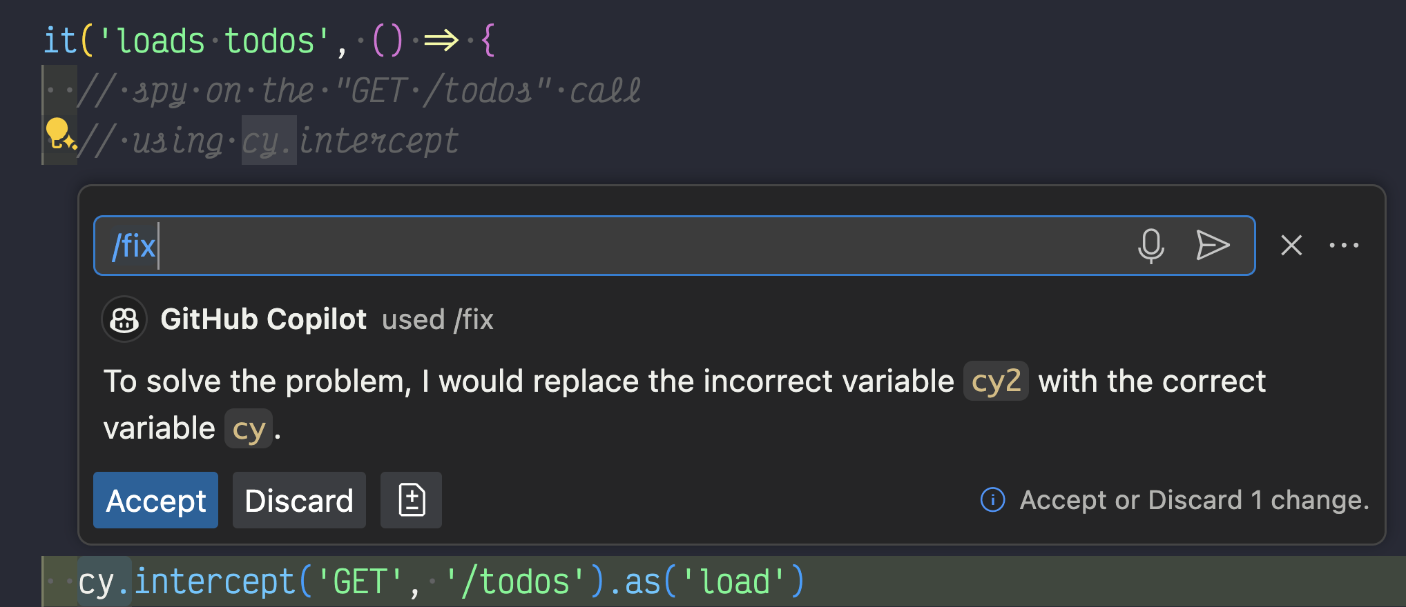 cy command chain/fix command/doc command to generate JSDoc commentscy.log commandshttps://github.com/bahmutov/cypress-copilot-example