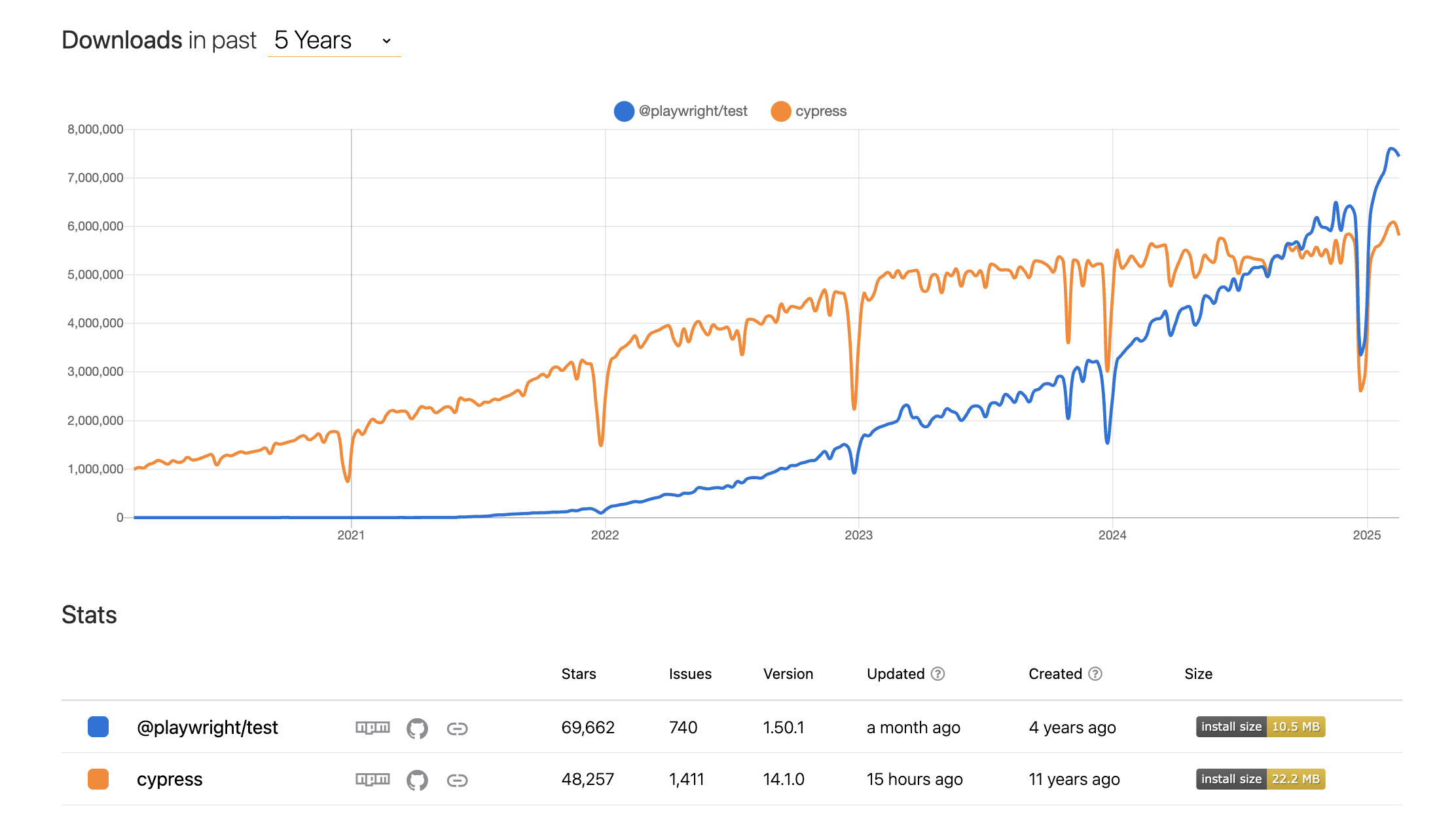 source: https://npmtrends.com/@playwright/test-vs-cypress