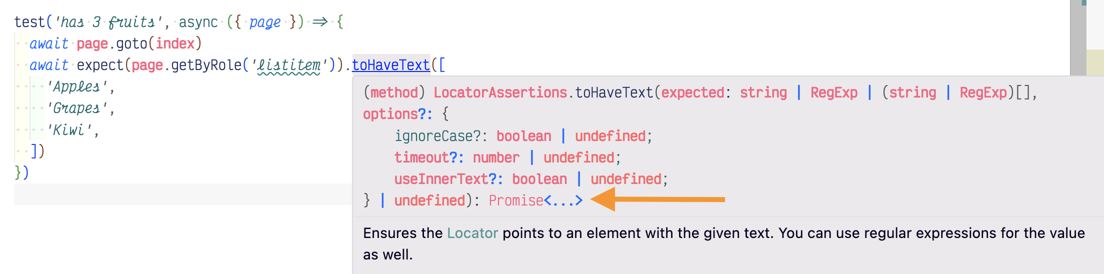 if you do not have "toHaveText" assertion...