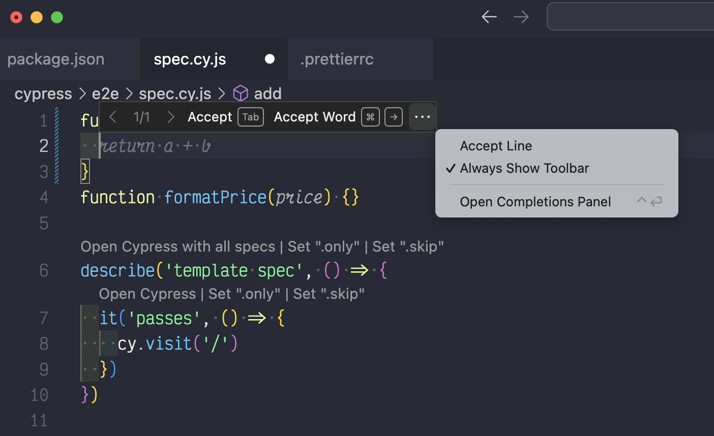 /fix command/doc command to generate JSDoc commentscy.log commandsadding-todos.cy.js