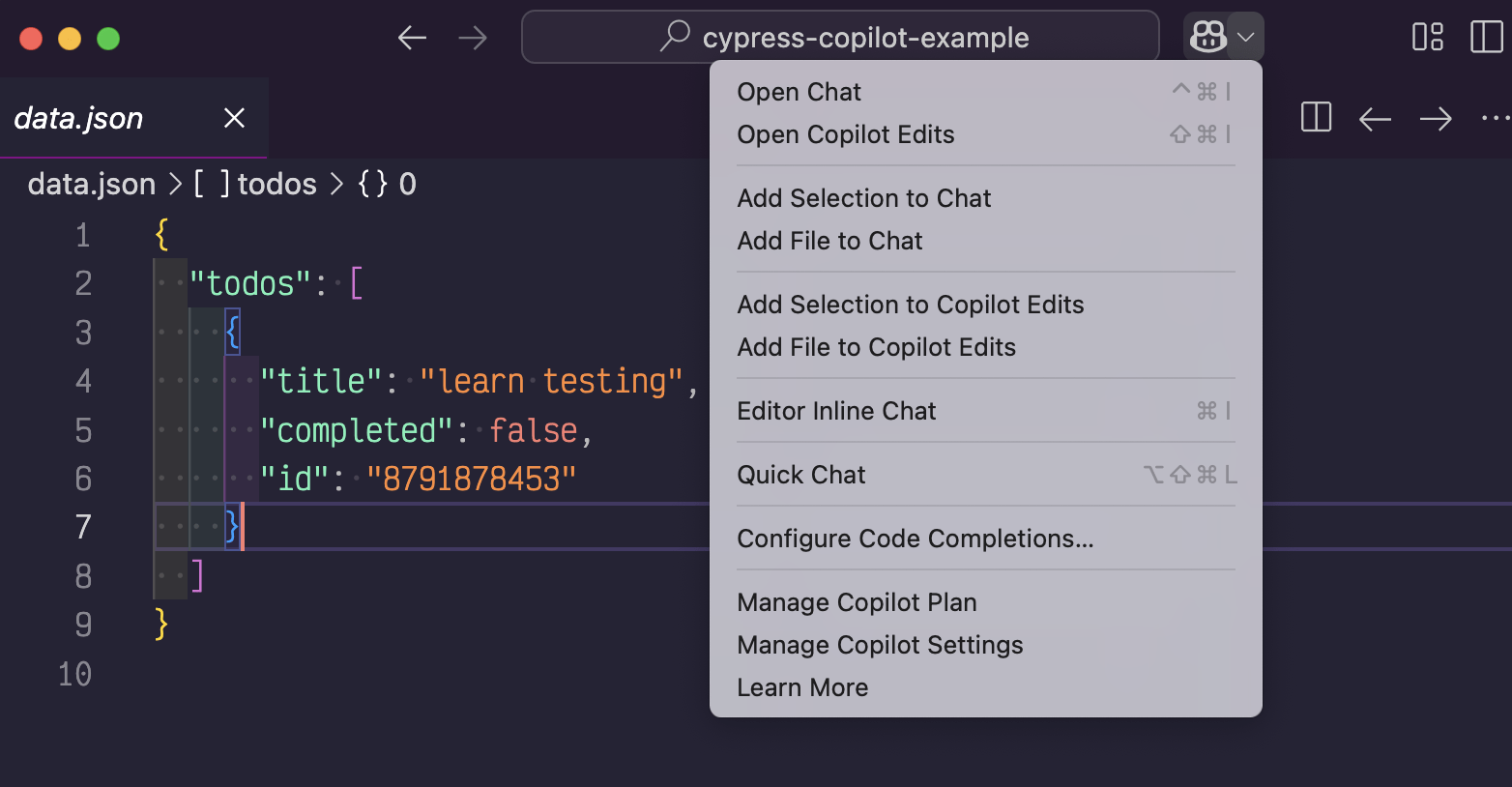 https://github.com/bahmutov/cypress-copilot-example