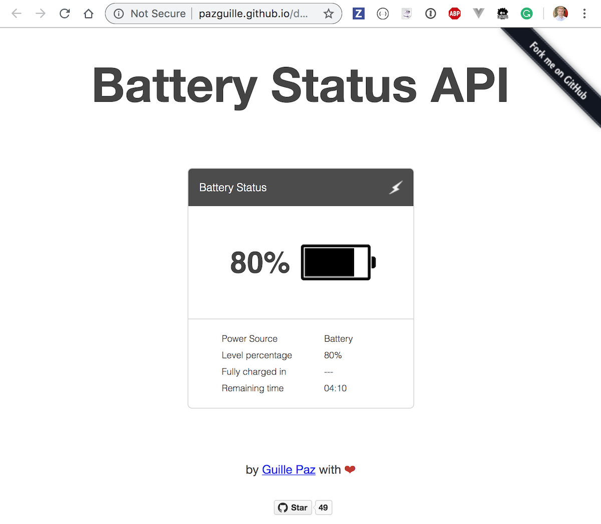 if (navigator.battery) {