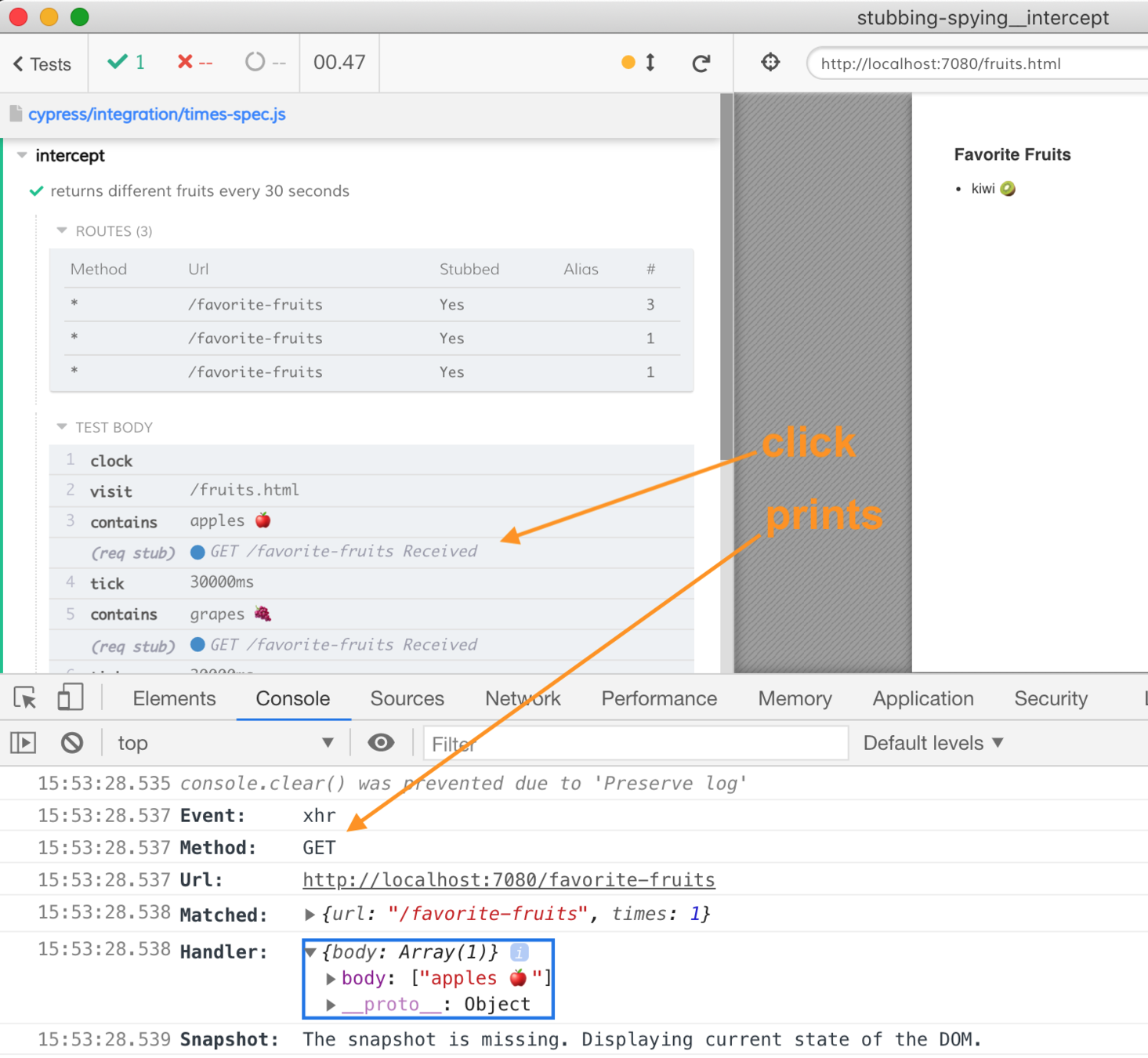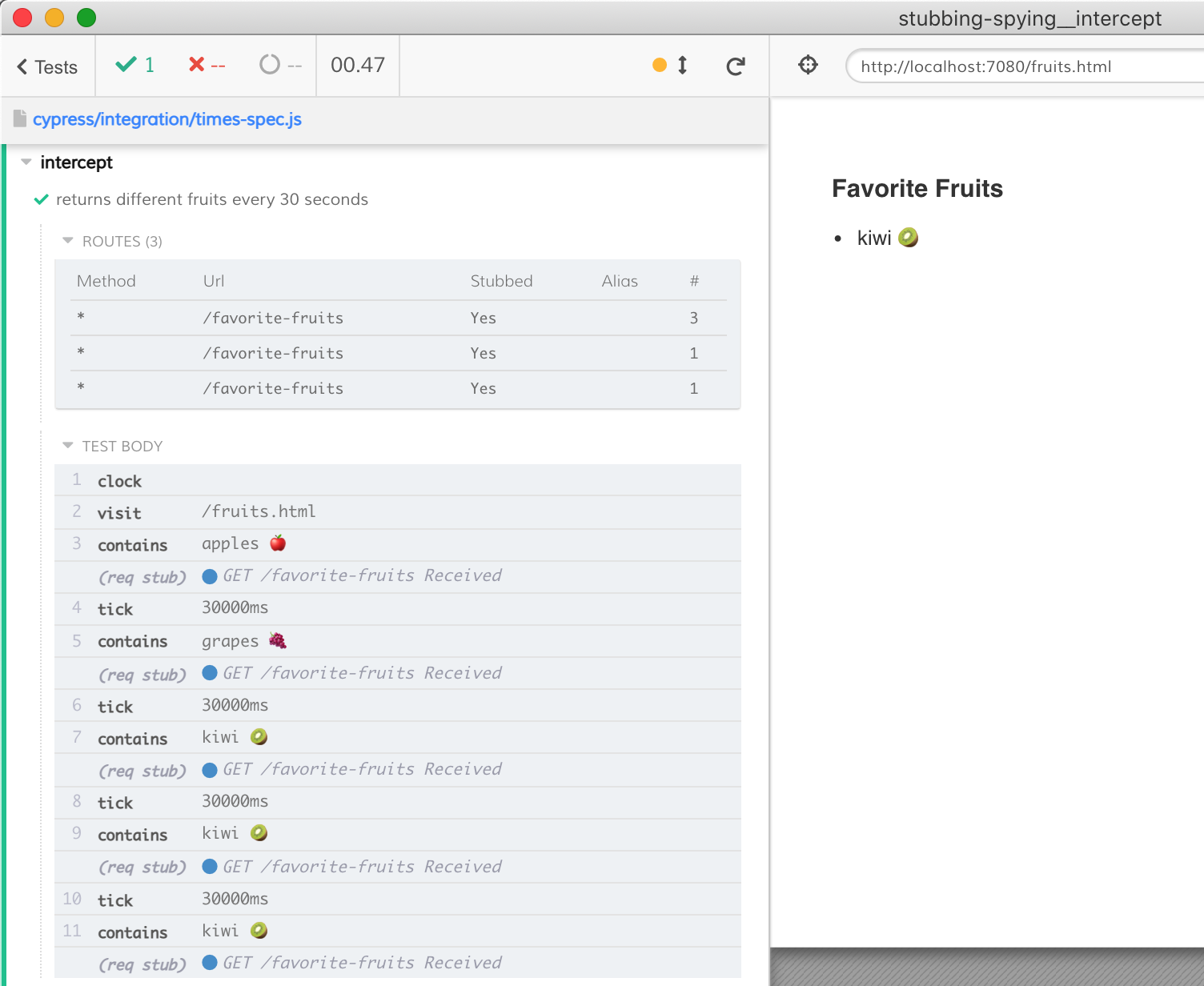 cy.intercept('/favorite-fruits', ['kiwi 🥝']) // 3rd, 4th, etc
