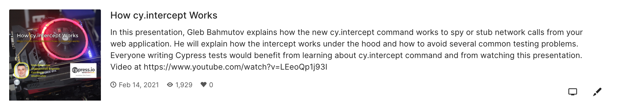 Suggested resource: https://slides.com/bahmutov/decks/cypress-introduction