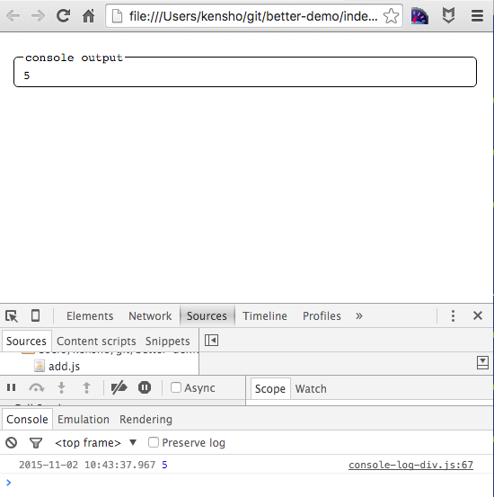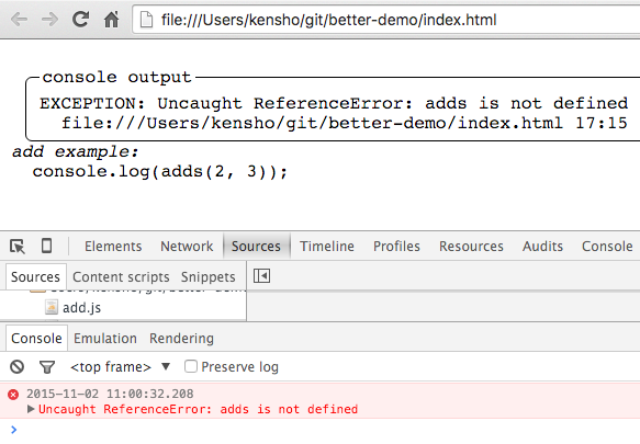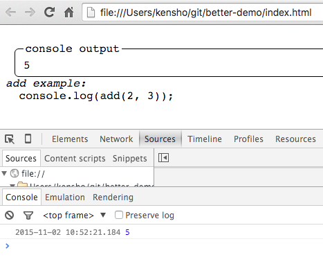 add(2, 3); // 5xplain -i add.js -i add-spec.js -o README.mdREADME.md