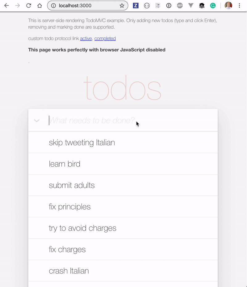 We see the great technology unification, with the boundary between the server and the client (browser) becoming blurrier every day. Who has time and budget to write separate code bases? In this presentation, Gleb will show the ultimate combination of NPM's two most popular packages: Browserify and Express; and their product that allows moving the complete server to run inside the browser's ServiceWorker. It is like server-side rendering but inside your browser, and even runs when JavaScript is disabled! Video at https://www.youtube.com/watch?v=NfZrL5eJa3g