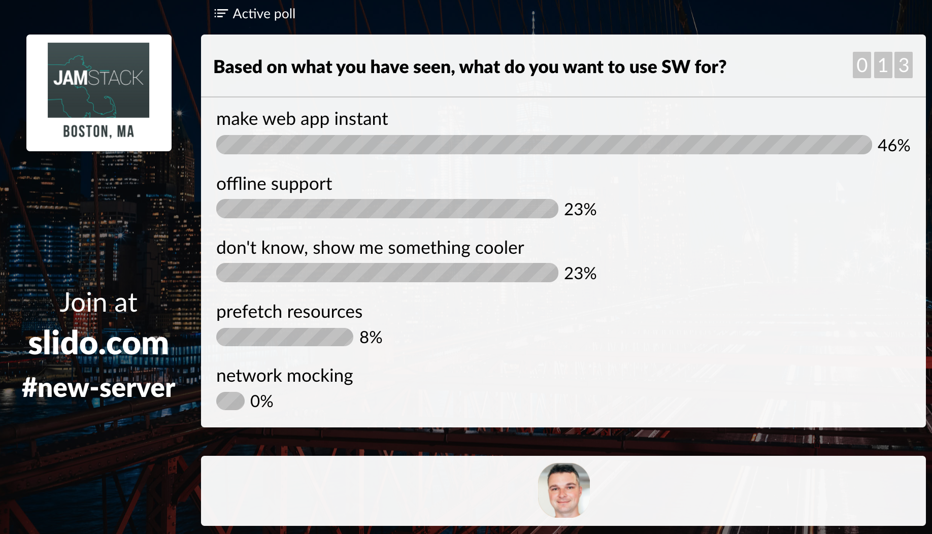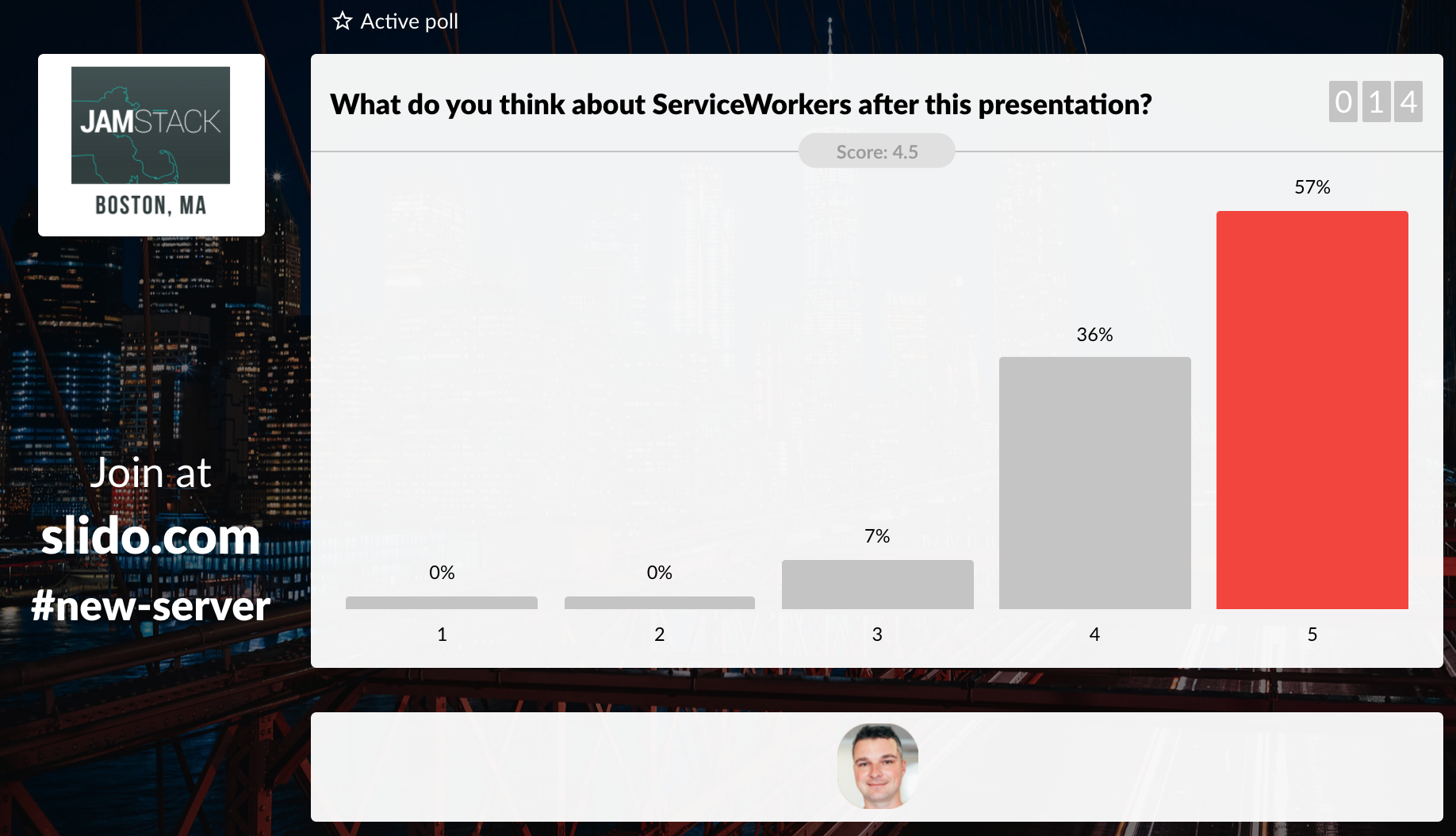 Poll: What do you think about ServiceWorkers after this presentation? ⭐️: don't care, ⭐️⭐️⭐️⭐️⭐️: WOW!