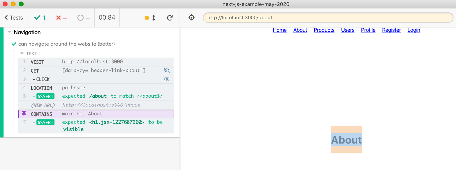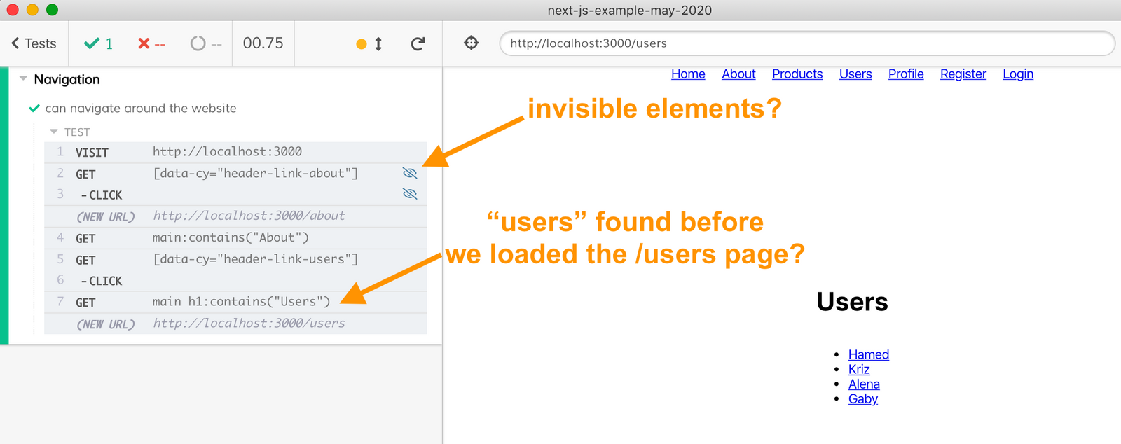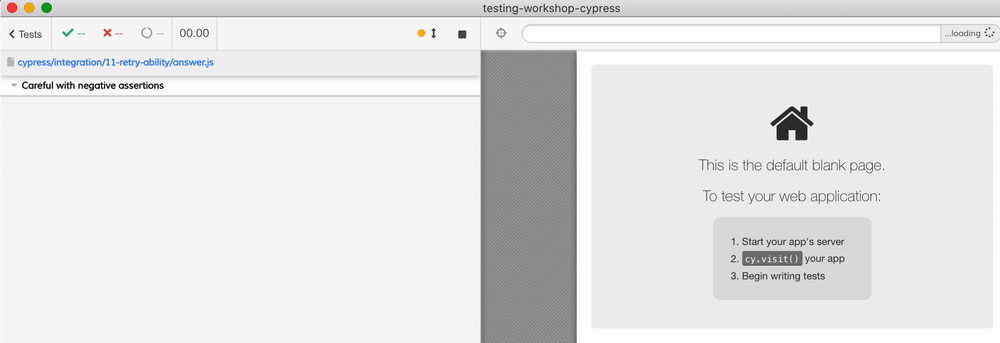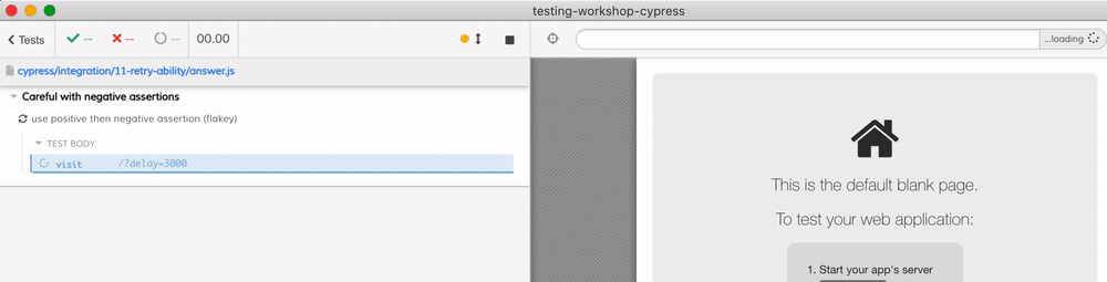 cy.get('#loading').should('not.be.visible')it('hides the loading element', () => {
