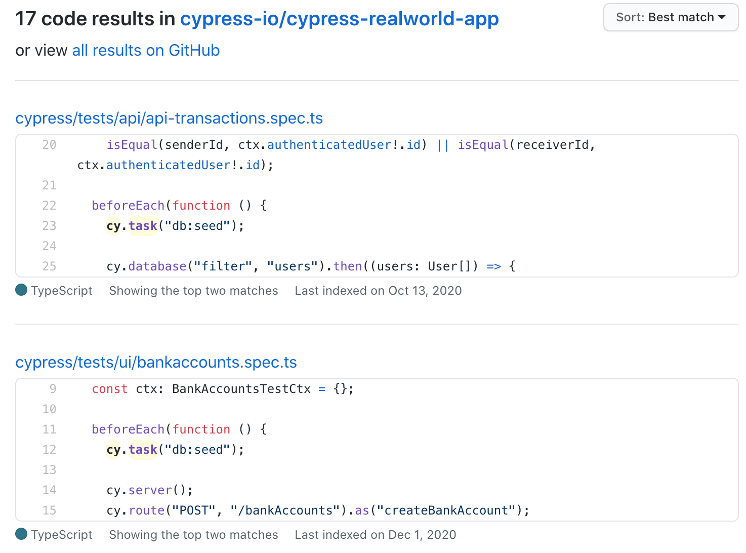 See https://github.com/cypress-io/cypress-realworld-app for good cy.task example