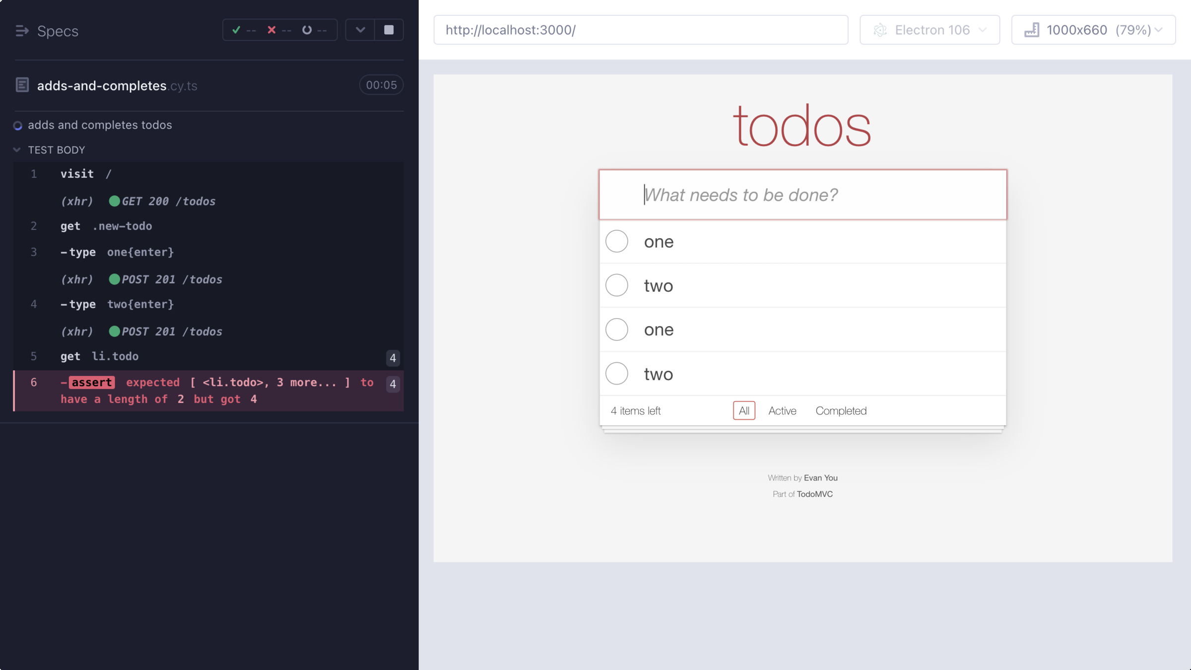 cy.get('li.todo').should('have.length', 3)If you can control the data in your tests, then the test syntax collapses into a simple and elegant fluent chain