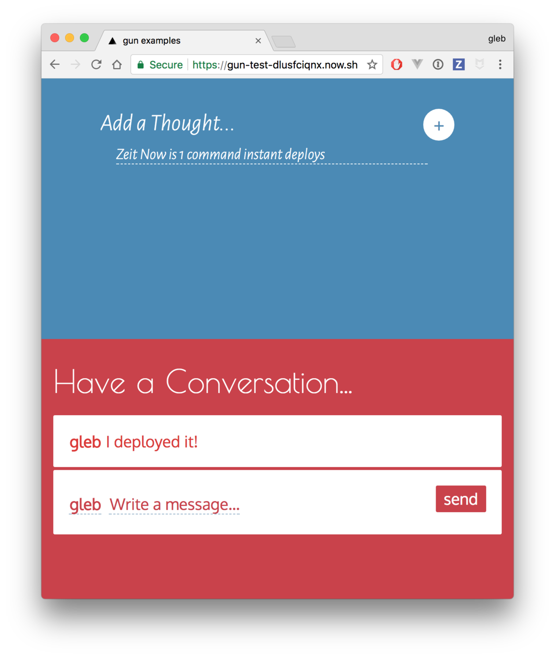 > Ready! https://gun-test-dlusfciqnx.now.sh (copied to clipboard) [3s]
