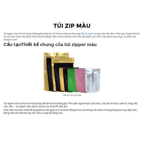 Từ kích thước đến thiết kế và sự dung hợp các loại chất liệu khác nhau. Loại túi này được sử dụng nhiều trong cuộc sống. Với thiết kế thông minh và tiện ích, giá thành lại rẻ, túi nhựa zip là sự lựa chọn số một của người dùng.