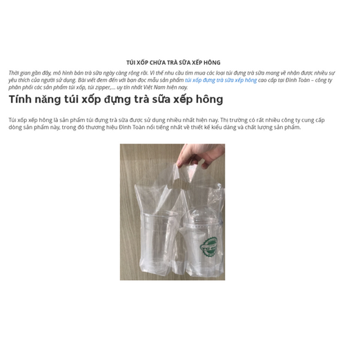 Túi sử dụng chất liệu nhựa PE có độ dẻo dai cao, độ bám dính giữa các màng tốt. Cùng với đó là khả năng chịu nhiệt cao và khả năng chống lại tác nhân ngoại lực tốt hơn so với túi zip trong suốt nhờ độ dày của chất liệu PE.