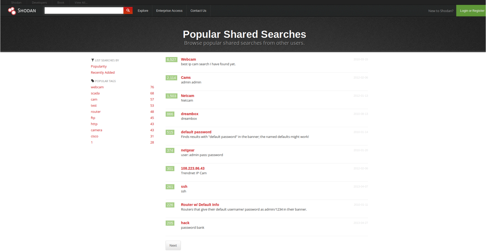 lets the user find specific types of computers (routers, servers, etc.) connected to the internet using a variety of filters