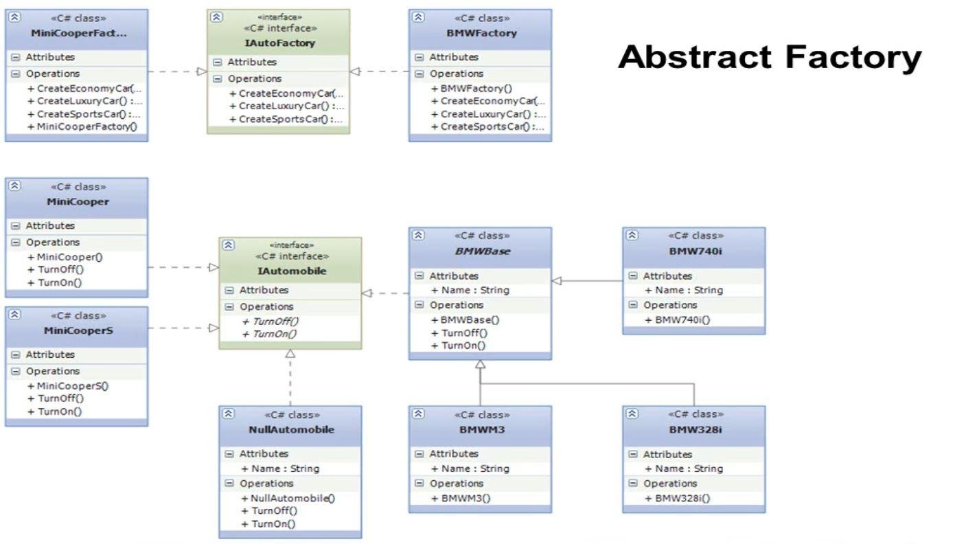 - Client - uses the interfaces declared by the AbstractFactory and AbstractProduct classes