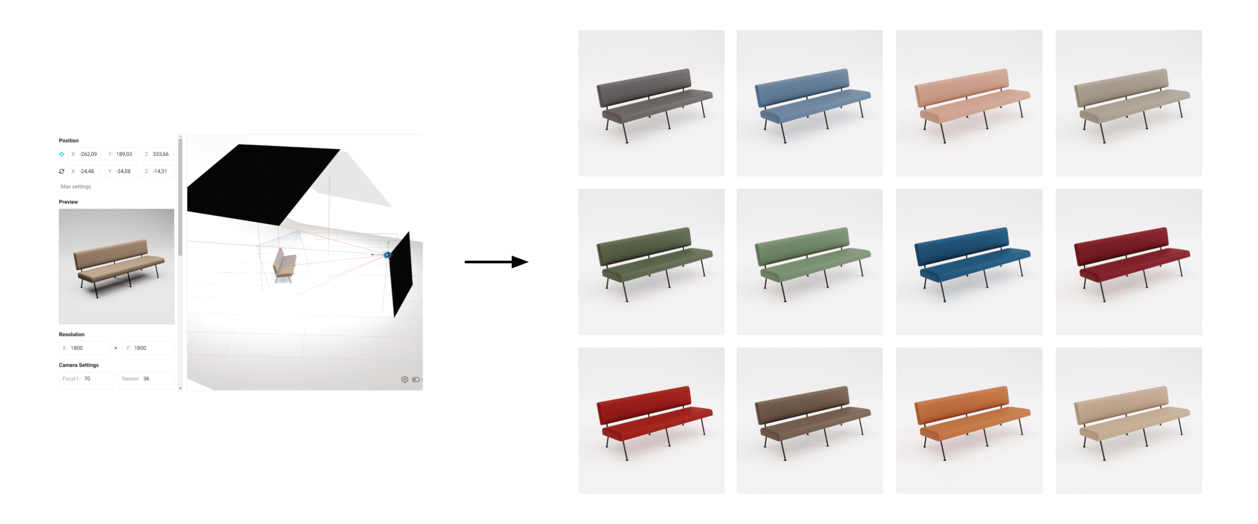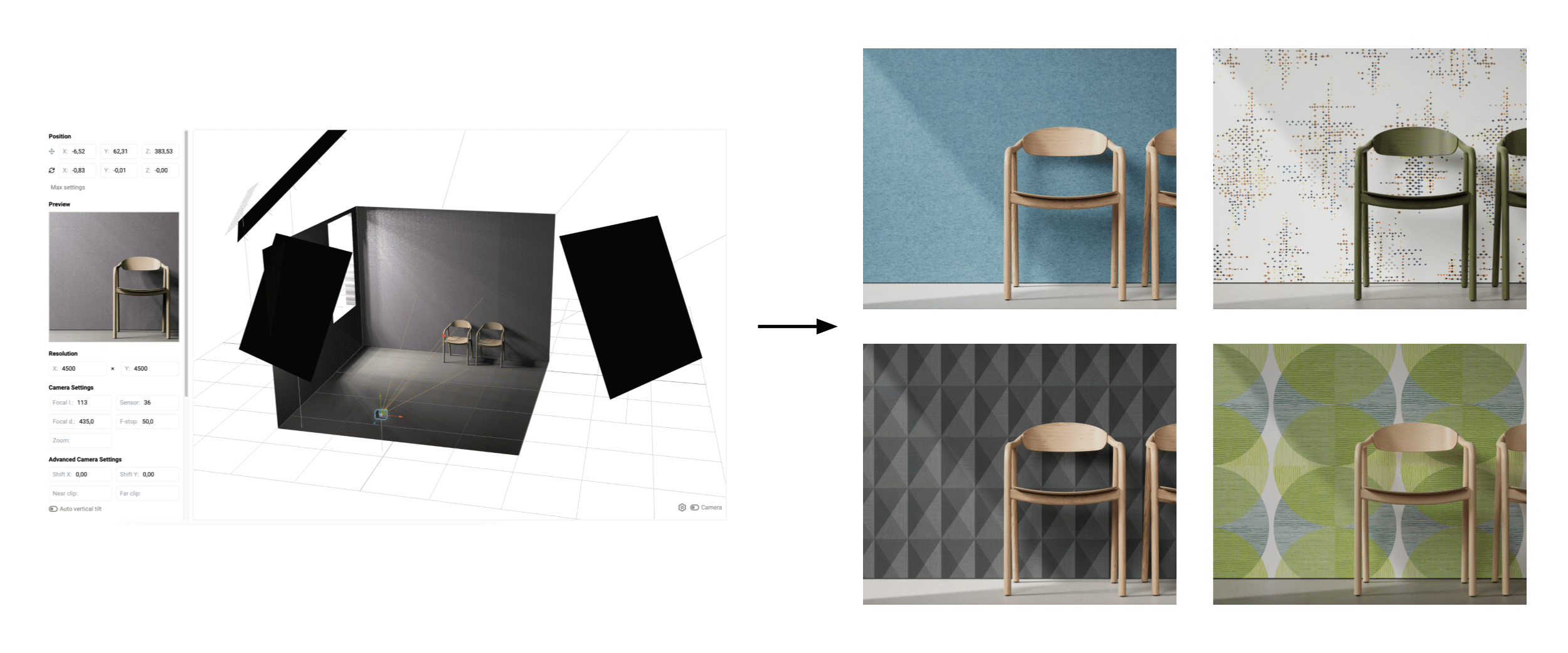 Prior to the ecosystem Designtex has created ca. 100-150 images a month. Since the integration of the ecosystem this number grew to 500 images a month. Which means that Designtex saw a ca. 4x increase in production of images while simultaneously reducing costs.