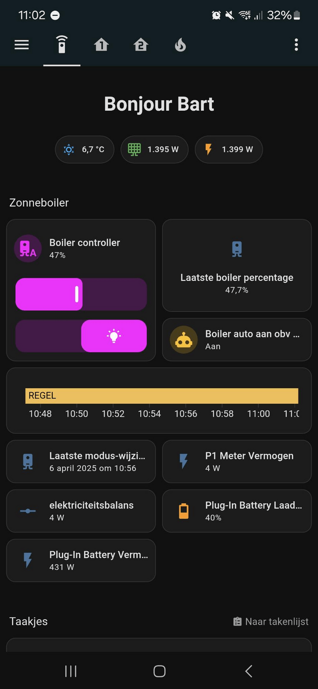 - alias: Percentage boiler omlaag als accu ontlaadt, anders normaal bepalen pct