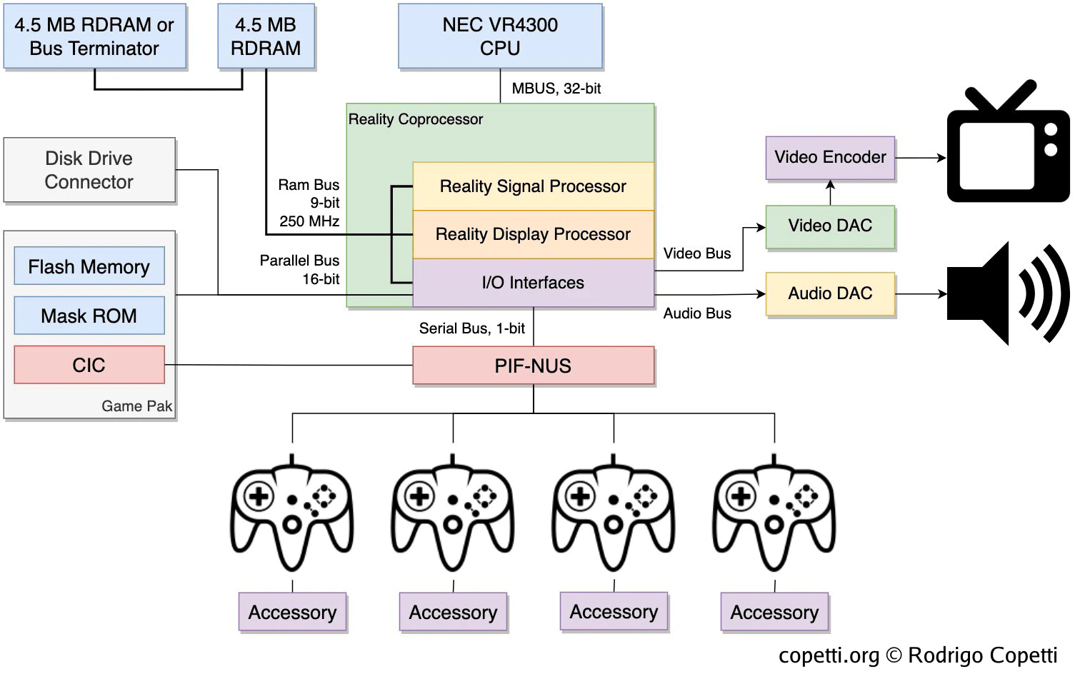 Last thing of note about the N64 CPU is that it has no direct access to the RAM, having to go through the RCP chip (the "GPU")
