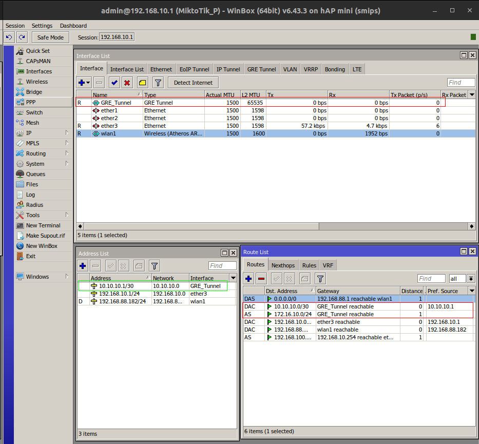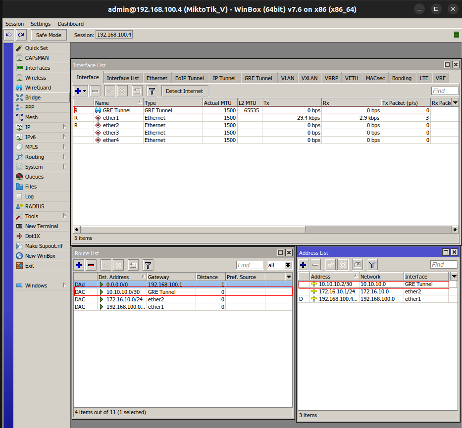 Configuring GRE Tunnel on Virtual MikroTik Router