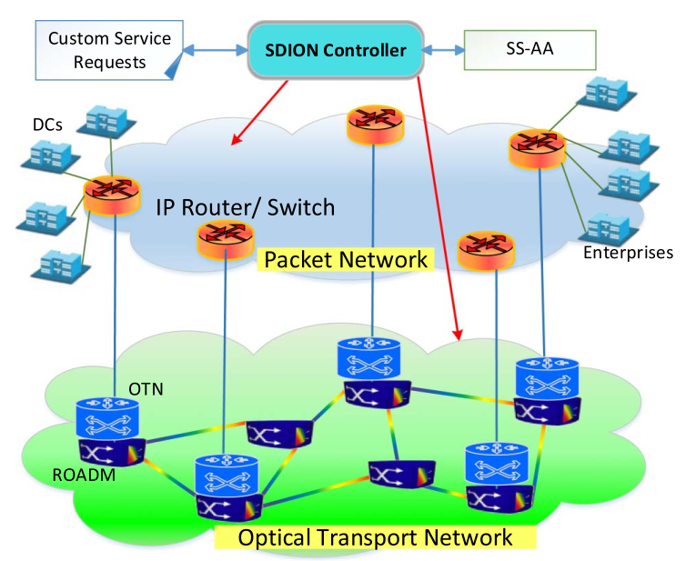 SDION - Software-defined IP over optical network SS-AA - Smart service aware application DCs - Data Cetners
