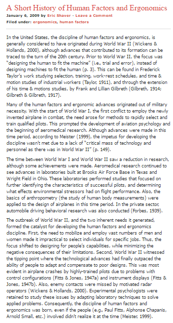 Second, World War II witnessed the tipping point where the technological advances had finally outpaced the ability of people to adapt and compensate to poor designs. This was most evident in airplane crashes by highly-trained pilots due to problems with control configurations. Experimental psychologists were retained to study these issues by adapting laboratory techniques to solve applied problems.