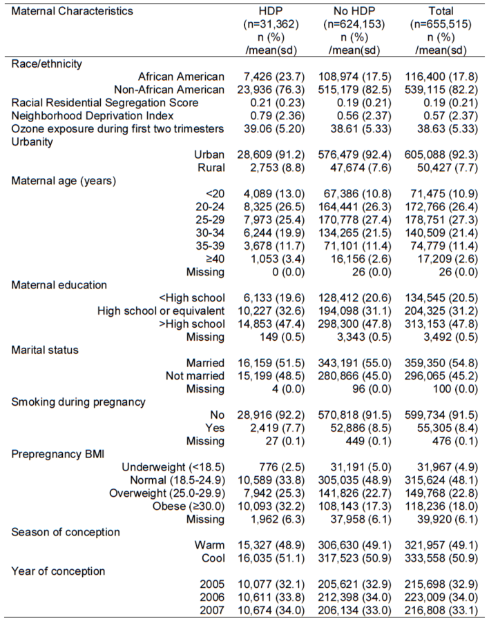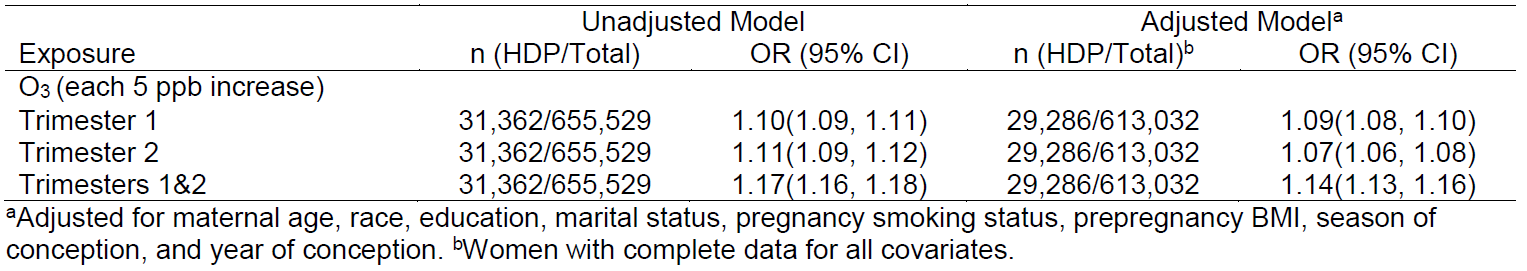 - To investigate the association between O3 exposure during pregnancy and hypertensive disorders of pregnancy.